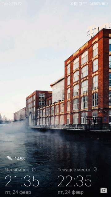 Considering that in smartphones Huawei the fingerprint scanner reacts to touch when the display is off, you will rarely see the lock screen. And there is nothing interesting here, everything is familiar. The last notification is displayed in the middle of the screen, you can unlock the phone by swiping in any direction or by double-clicking on the notification. The camera is launched by dragging the icon in the lower right corner. The time and date are displayed at the bottom right.